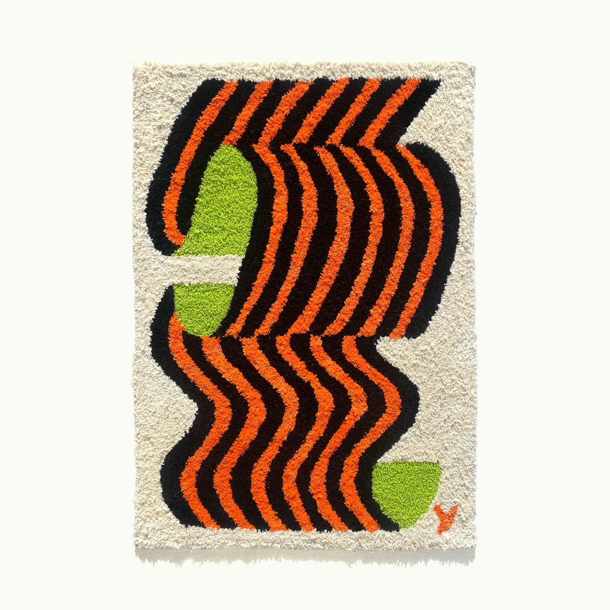 - Hand-tufted by Yoko Georgiou in Torquay Victoria Australia.